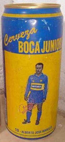 Las latas, altas, de casi 16 centímetros y 473 mililítros, eran de la cerveza Boca Juniors, un pedazo de merchandising increíble que se vendía en los fastuosos años 90, comercializada como “La cerveza de la Número 12”. Valor actual de la latita: 200 pesos. Negociamos hasta 150. Si nos envidian, pueden conseguirlas todavía en Mercado Libre.